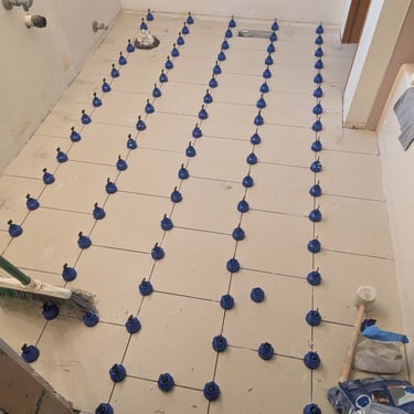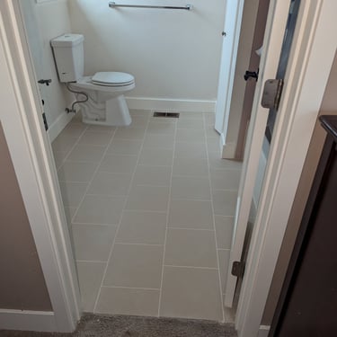 In this project, we carried out a complete renovation of the apartment, transforming it from a bare base to a high-end finish. The process: Installation of large-format ceramic tiles in a soft gray tone that creates a sense of spaciousness and modernity. Technical detail: A staggered tile pattern (brick-like) was used to add visual dynamism, ensuring perfect alignment with fixed elements such as the toilet and ventilation grilles. Result: A clean, contemporary space with premium finishes that enhance the property's value.