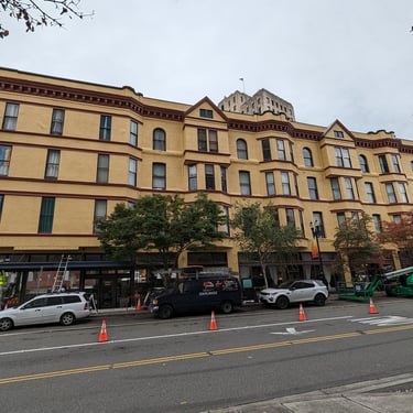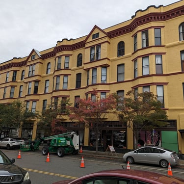 "Los edificios históricos requieren un cuidado especial y una visión experta. En este proyecto de gran escala, revitalizamos una fachada urbana que presentaba un avanzado estado de deterioro por contaminación, humedad y el paso del tiempo. Preparación Industrial: Realizamos una limpieza profunda de la superficie para eliminar años de acumulación de suciedad y residuos ambientales, asegurando una base firme. Esquema de Color Audaz: Aplicamos un tono ocre/amarillo cálido como base, contrastado con molduras y cornisas en un elegante rojo terracota, resaltando los detalles arquitectónicos únicos del edificio. Logística y Seguridad: Coordinamos el uso de plataformas elevadoras (boom lifts) y gestión de tráfico para trabajar de manera segura en una zona urbana concurrida, sin interrumpir la actividad de los locales comerciales en la planta baja."
